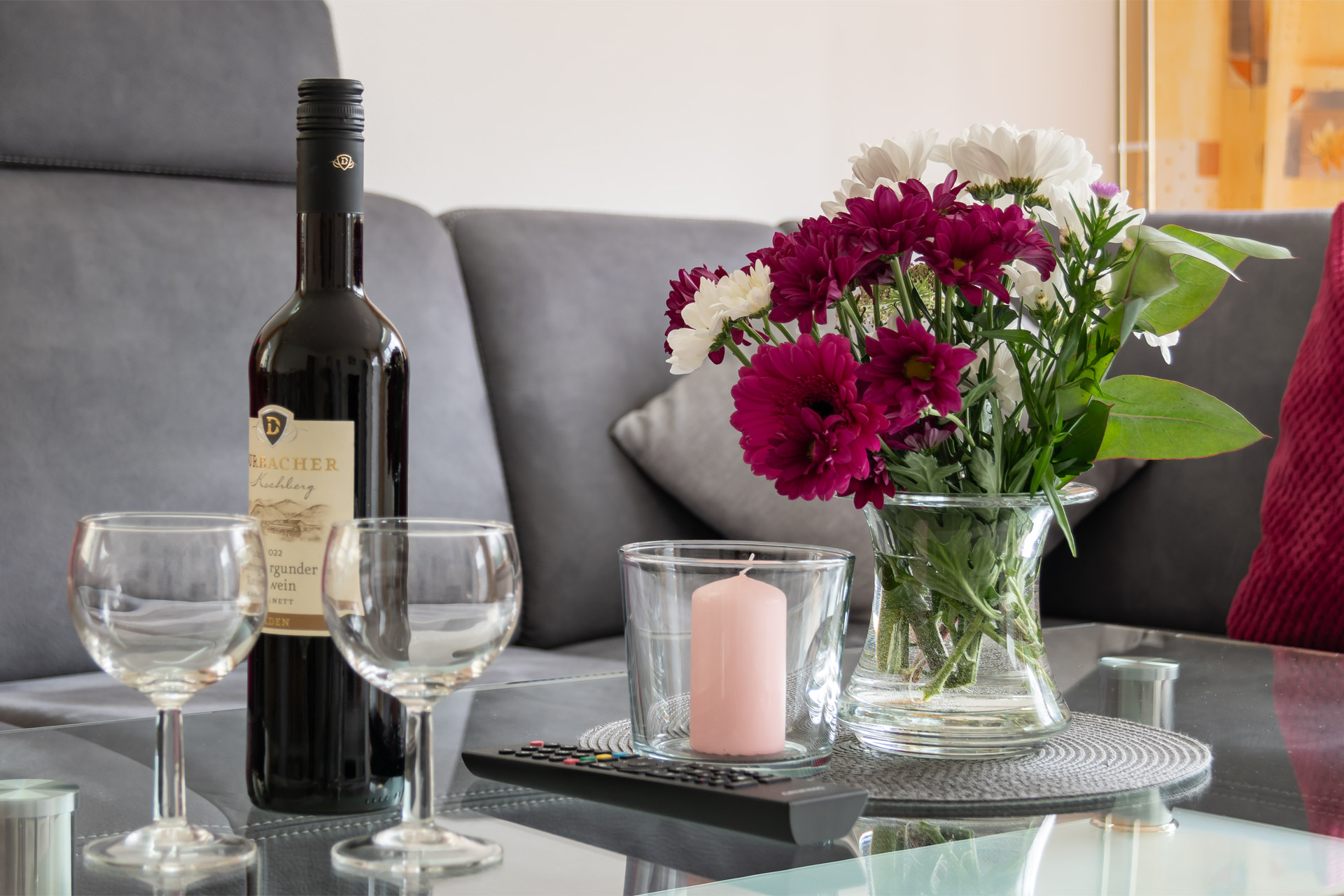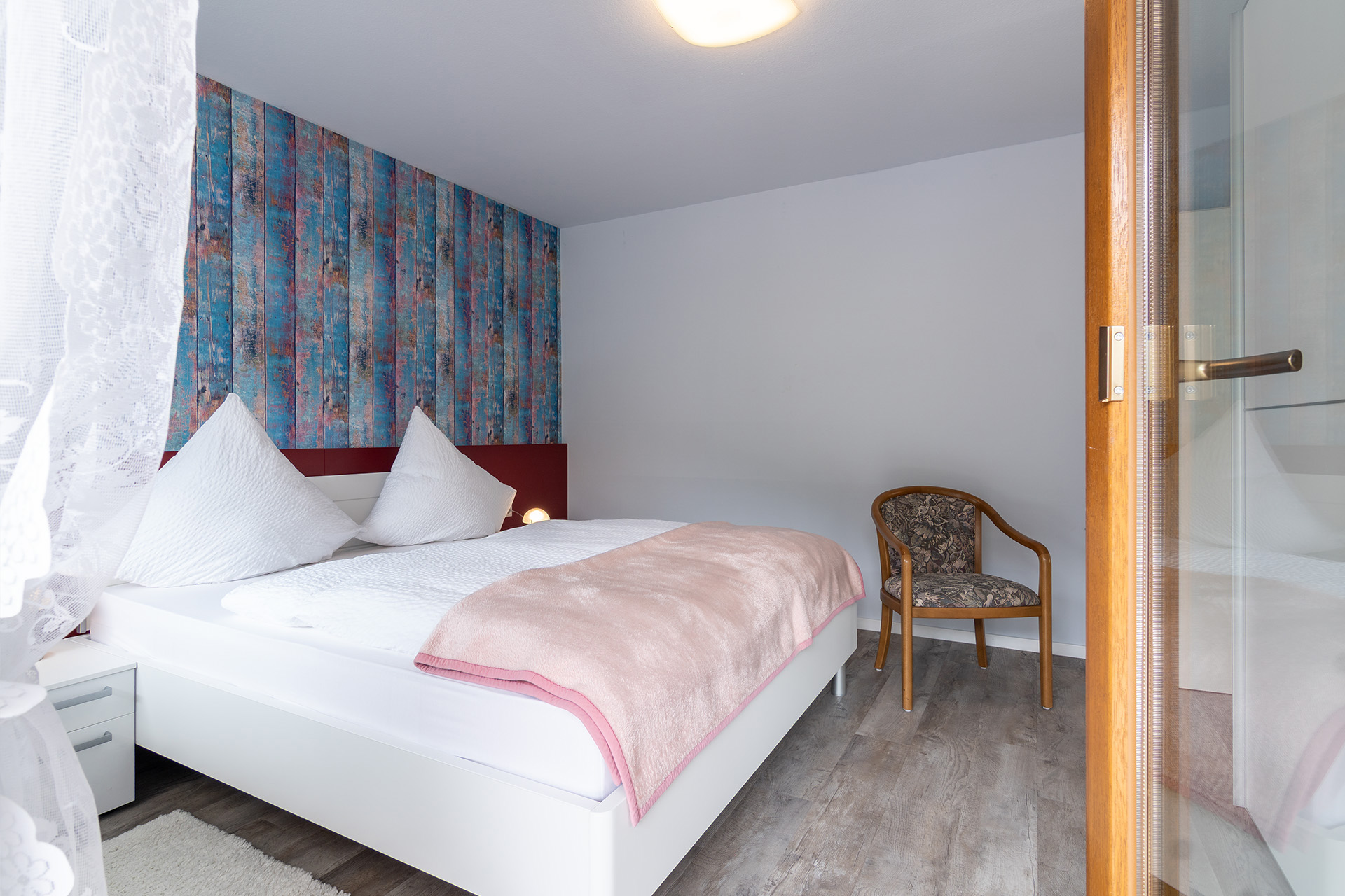 Die Ferienwohnung Talblick bietet auf 65 m² Platz für bis zu 3 Personen. Vom Balkon blicken Sie weit ins Tal, während innen warme Farben und natürliche Materialien eine behagliche Atmosphäre schaffen. Ob beim Frühstück mit Aussicht auf dem Balkon oder nach einer Wanderung auf gemütlichen Sofa – hier fällt das Ankommen leicht.